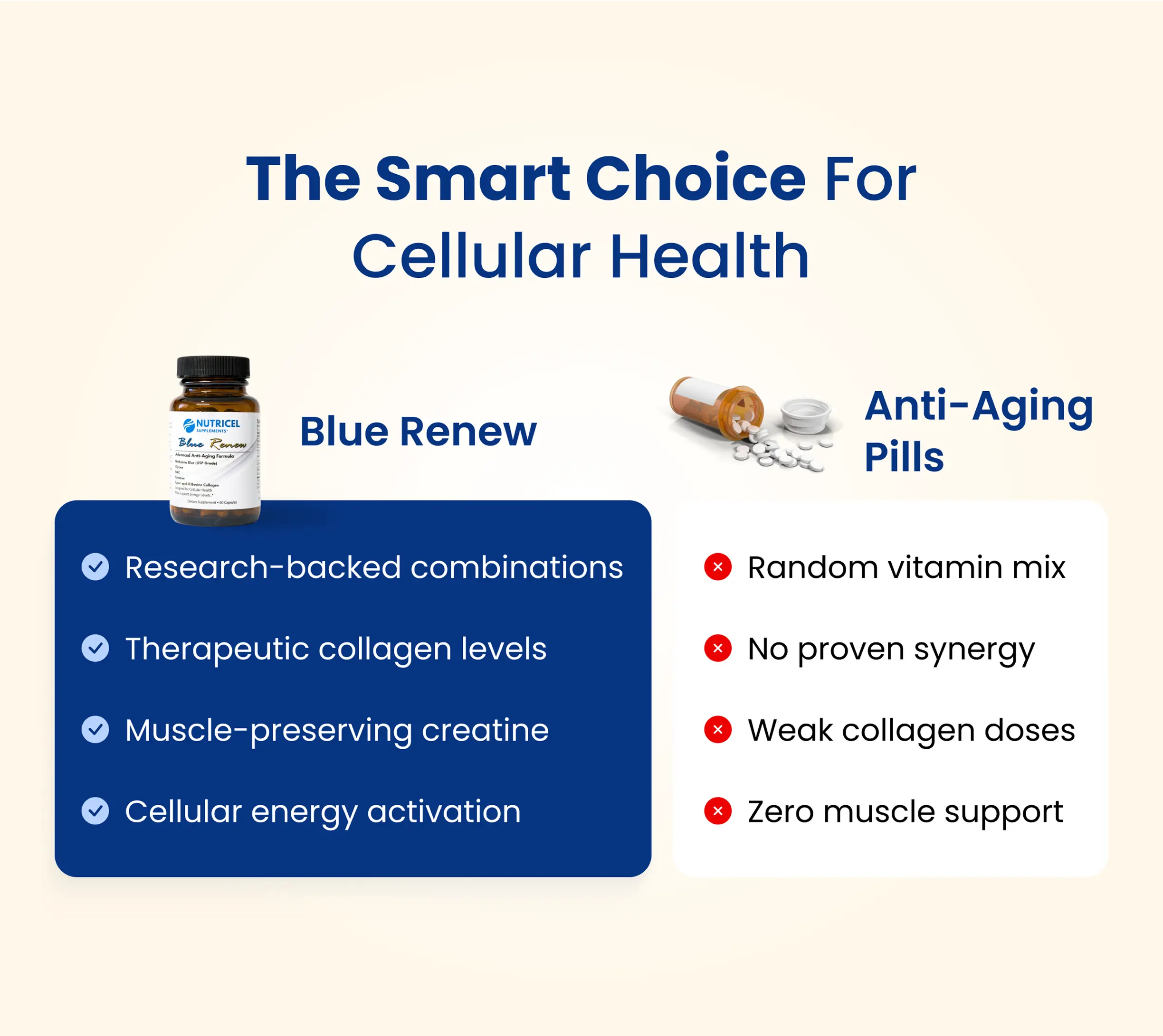 Each capsule is precision-dosed and manufactured in the United States under rigorous quality standards, with third-party testing for purity and potency to ensure consistency and reliability. Blue Renew is engineered for daily use to provide layered support for metabolic pathways, antioxidant defenses, structural support, and mitochondrial function.