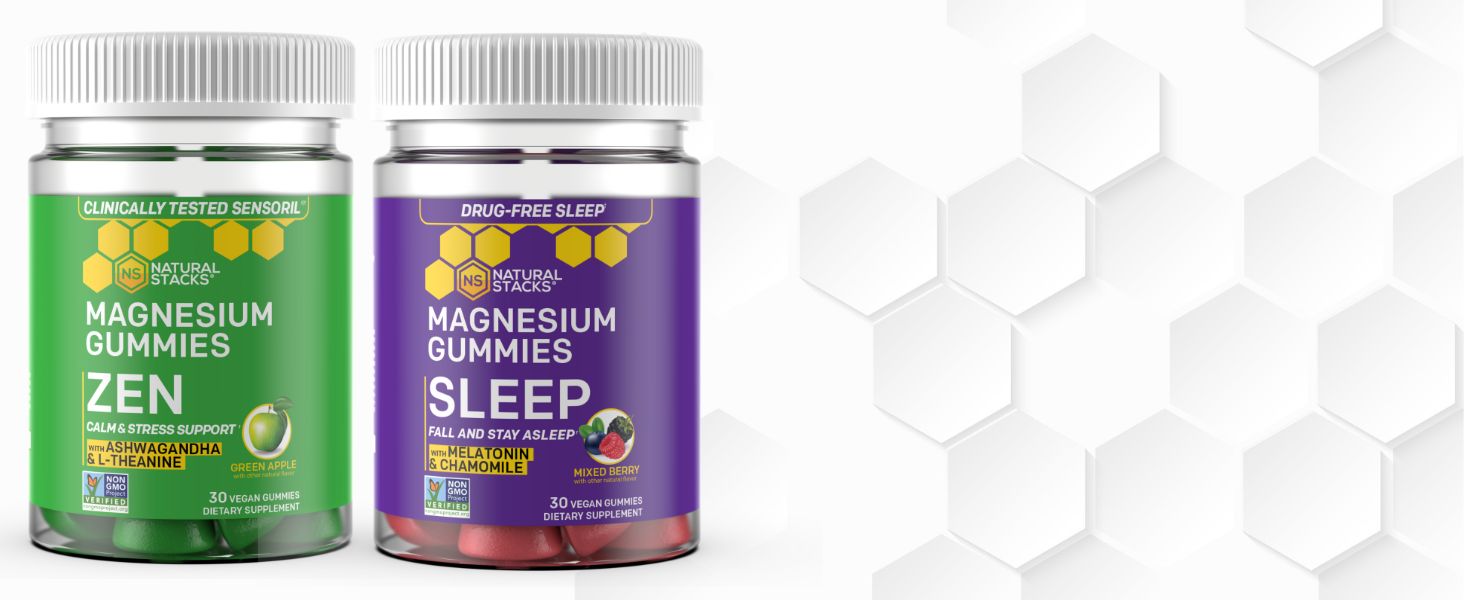 Natural Stacks Magnesium Gummies Bundle - Sleep Magnesium Gummies + Zen Magnesium Stress Gummies w/L-Theanine