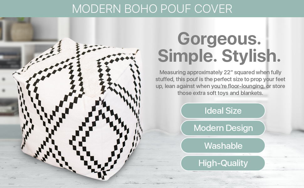 ► PERFECT SIZE – Sized for ultimate comfort and usage, our pouf measures approximately 22" square/cubed when stuffed. Not too big, not too small. A just-right size to prop your feet up, lean against when you’re floor-lounging, and store those extra blankets, pillows and soft toys.