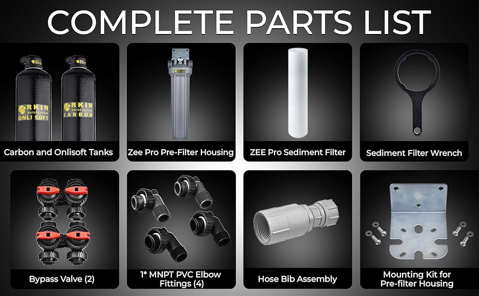 RKIN Water Softener & Whole House Carbon Filter System – Removes Chlorine & Contaminants, Softens Hard Water for Healthier Hair & Skin